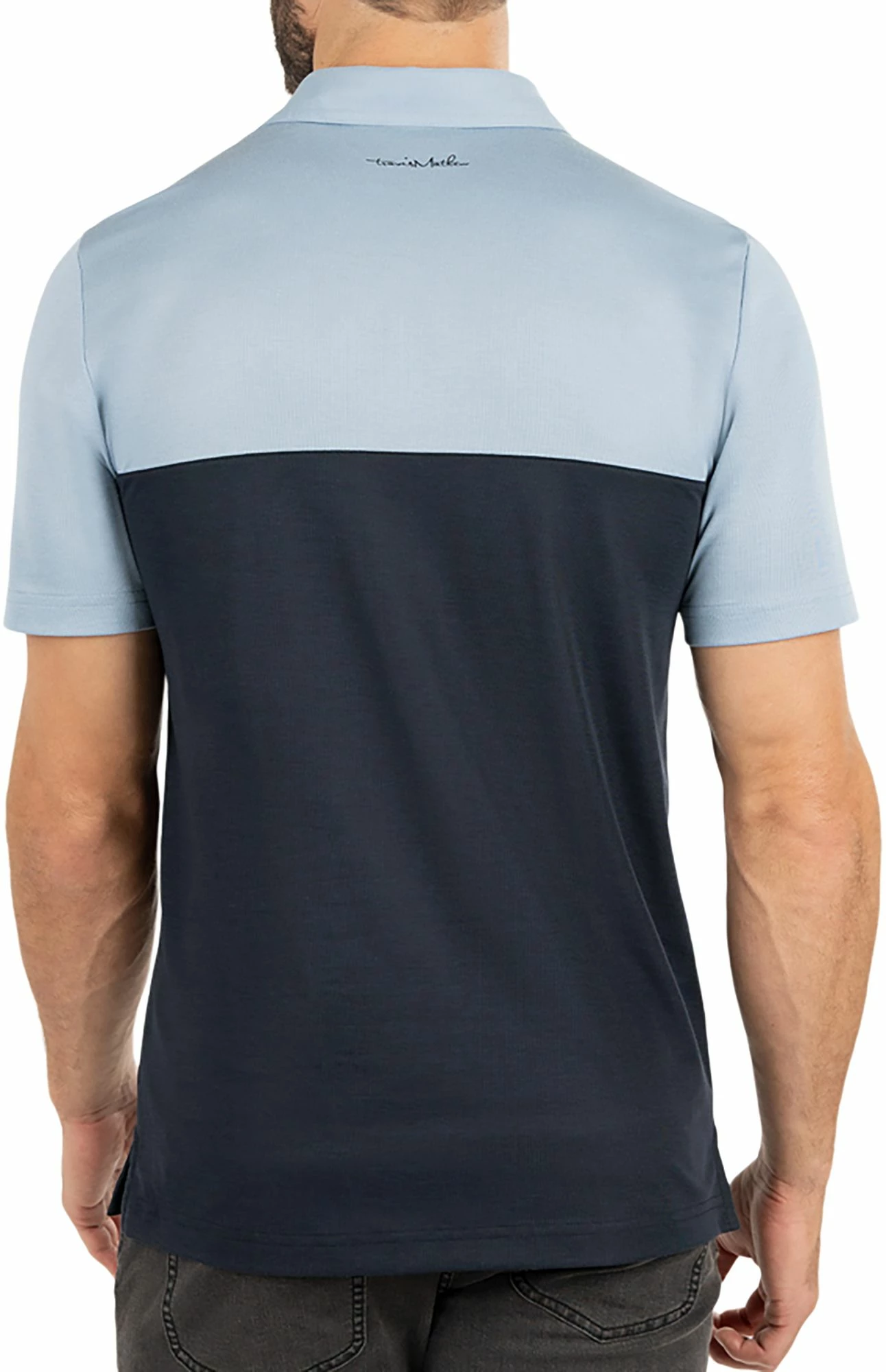 - Signature TravisMathew logo on back yoke